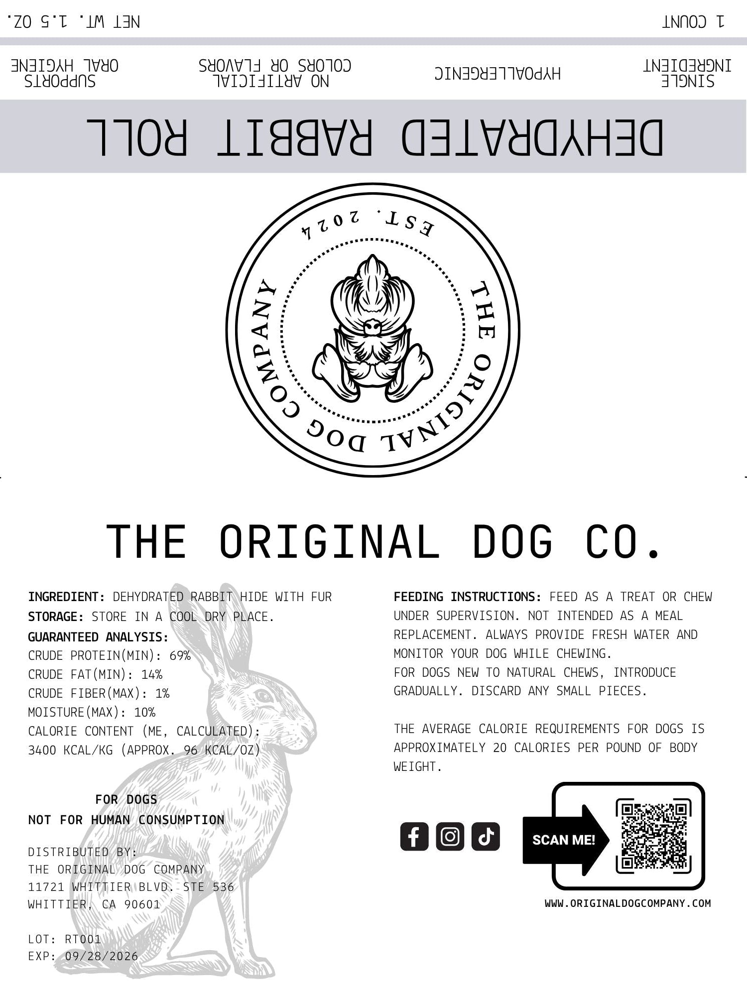 Give your dog the ultimate natural chew with our Dehydrated Rabbit Roll — made from whole rabbit hide, fur and all. At 8–12 inches long, this durable chew offers both enrichment and health benefits, while satisfying your pup’s natural instinct to chew.